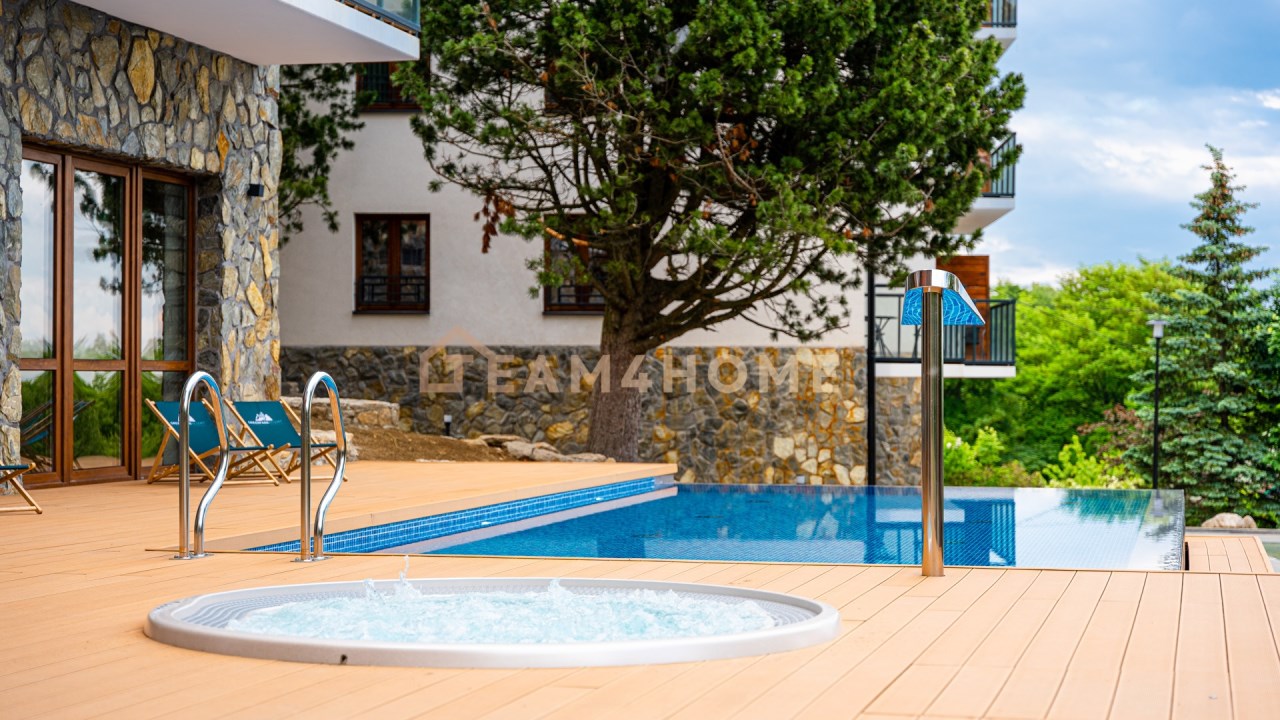 Budynek z 2022 roku wyposażony jest w windę oraz rozbudowaną strefę SPA, w której znajdują się m.in. jacuzzi wewnętrzne i zewnętrzne oraz sauna.